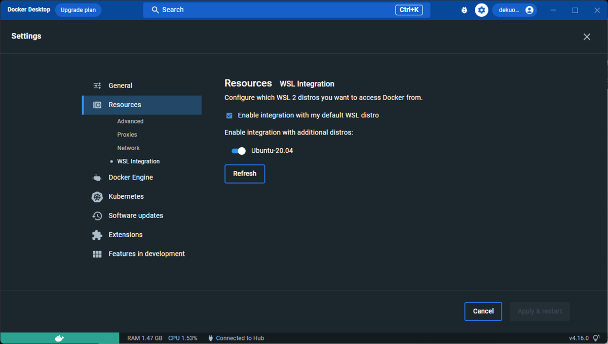 - Dockerが使用するWSL2ディストリビューション: Ubuntu20.04.5